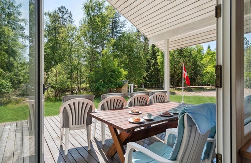 Welcome to this lovely house that invites you to feel at home with simple comfort. The open living space with wooden ceilings and walls offers you the right size to cook together in the kitchen or play at the dining table. Relaxation is also a priority here and you can sweat out your daily stress in the sauna. Afterwards, you can sweat it out on the terrace and enjoy the sun. Barbecue together in the evenings and play with your children on the lawn. Through the trees of the neighboring property you may catch a glimpse or two of the water.