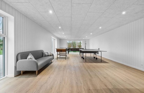 Your holiday home in Ellinge Lyng offers an inviting atmosphere with bright rooms that are flooded with natural light through large windows. The open-plan living concept creates a carefree and pleasant atmosphere. Start your day in the stylish kitchen, which is ideally equipped for preparing delicious meals. Enjoy your breakfast at the large dining table, which offers plenty of space for shared meals and relaxing hours. The hotel's foosball table provides entertainment. Organise a fun tournament and determine the family holiday champion in table football. After an eventful day, you can relax on the comfortable sofas, watch a film or simply enjoy the peace and quiet.