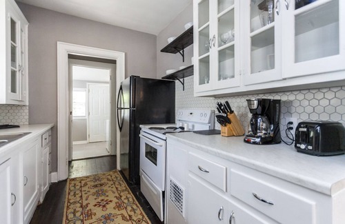 Our home was built in 1938. We've separated the house into two apartments. The 3 bedroom, 2 bath unit is on the main floor. Each bedroom has a queen-size bed. For additional sleeping, we've added another twin bed in one of the bedrooms and a queen sofa bed in the living room. In total, the space can sleep up to 10 people. There is a full kitchen (with dishwasher), 2 full bathrooms (each with a tub), dining, and living space. An added plus is the washer and dryer.