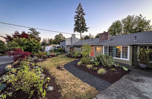 This well-loved home blends vintage charm with mid-century modern style. Thoughtfully furnished to highlight its original character, it features rare A/C, a cozy media room, and an outdoor lounge with a fire pit. Perfect for families or groups, it’s just 10 minutes from downtown Bellevue and Lake Sammamish. Enjoy comfort, convenience, and a welcoming space designed for relaxation and entertainment.