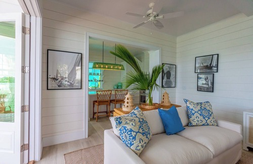 Surf Inn has a beautiful view of the Sea of Abaco to fill its large windows, and boasts three spacious bedrooms and three bathrooms in historically inspired island-style architecture. It features a private dock for your boat, and includes dramatic water views, modern engineering/amenities, a gorgeous porch for outdoor dining and relaxing, a sun room, and charming details throughout.