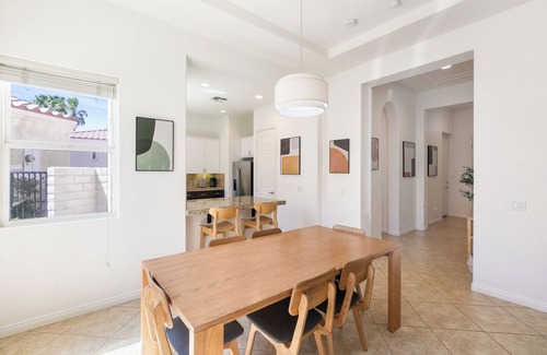 3 min walk to pool! | Pool, Spa, Gym, Tennis! is located in La Quinta. 3 min walk to pool! | Pool, Spa, Gym, Tennis! provides accommodation, featuring Bedding/Linens, Child Friendly, Kitchen, among other amenities. This House features Bedding/Linens, Child Friendly, Kitchen, to make your stay a comfortable one.