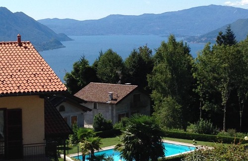 The tastefully furnished 3-room apartment is located on the upper floor of a secluded residence in a quiet south facing position. Approximately 70 m² of living space spread over 2 levels. To emphasize is the large and maintained swimming pool with lawn, the weather is open from early May to mid-October. Wonderful walking and hiking trails start from the house, where you can enjoy both the magical view, the heavenly silence and the fresh and healthy air. Here, on the sunniest slope of Luino, you will find a little paradise. In the village itself there is a bar, a mini market, a restaurant and a pizzeria. You park your car in your private underground car park. Furthermore, free guest parking spaces are available in front of the residence. Pets are not allowed. Layout: ► First floor: Entrance lounge / dining room with pull-out sofa bed for 2 persons, satellite TV, dream lake view and exit to the balcony Well equipped open kitchen with dishwasher and washing machine, oven, microwave, toaster and 4-burner stove Bedroom with Double bed (mattress size approx. 1.60 mx 2.00 m) Friendly bathroom with shower, bidet and window Approx. 7 m² large balcony with a fantastic view of the lake and the surrounding mountains ► Attic with sloping ceilings: 2. Bedroom with double bed (mattress size approx. 1. 60 m x 2. 00 m)