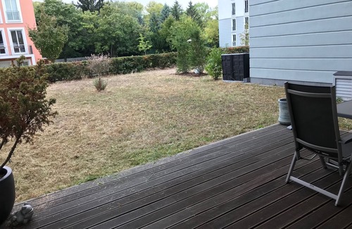 The luxury apartment, which was completed in 2012, is located just 5 minutes walk from Volkspark Friedrichshain, Berlin. Up to Alex you drive by car only 10 minutes. It is located in the high ground floor and has its own garden and Tarasse. The apartment has a bespoke modern brand kitchen equipped with high-end appliances. The kitchen has an oven, microwave, fridge, dishwasher, induction hobs and all the utensils and crockery you need for a relaxing stay. The apartment has two separate bedrooms, one bedroom is furnished with a double bed, a second with two single beds, with a single bed a pull-out drawer with a mattress (200x80), so that sleeps 3 people. From the spacious 30 m2 living room you go into the garden. In the apartment there are two bathrooms (bath and shower). A cot is available in the apartment.