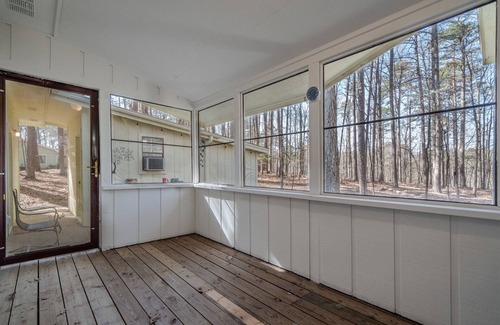 WIFI, HDTV - A nicely furnished one level home with garage in a peaceful wooded setting. The spacious home has comfortable furnishings in the living room with HDTV, a kitchen with modern appliances, and a screened in porch overlooking miles of woods full of our furry friends. The master bedroom has HDTV and a king bed. The master bathroom has a tub and shower. The guest bedroom has a queen bed and HDTV. The guest bathroom has a tub and shower. The home is conveniently located near the Highway 7 West Gate, Lake DeSoto, DeSoto Golf Club, family recreation area and local restaurants.