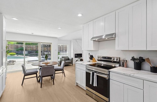 With a calming palette of neutral colors and earth tones, this relaxing retreat offers a plethora of space for hosting large groups. The spacious backyard features an outdoor swimming pool, a fully fenced yard, and a covered patio. Inside, you’ll find an open-concept layout for easy socializing as well as a fully equipped kitchen, 3 bedrooms, and 2 bathrooms. Don’t wait - you won’t want to miss out on this hidden gem!