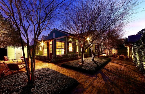 Greatmen Cottage is available as a Vacation Rental & as a Filming Location. It has been completely renovated, updated and professionally decorated and landscaped. This home is very spacious at 2,000 square feet. It has open views and an enormous, very private side yard and back yard that feature extensive brick terraces and beautiful plantings.
