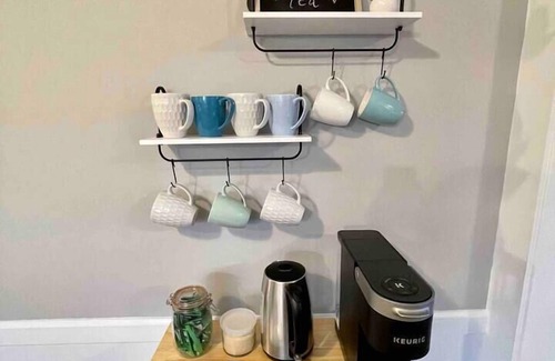 This home is equipped to be your culinary home away from home. We've got brand new countertops, dish washer, cooktop + oven and refrigerator... not to mention our spices and the essentials for your coffee and tea.