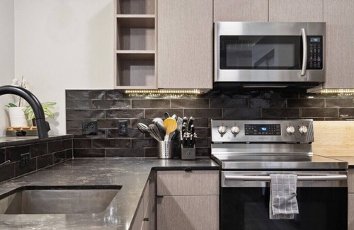 Central 3-Bedroom luxury apartment in a new apartment building with a century-old soul. Live right in the heart of Center City with on-site parking. Indulge in the panoramic cityscape from our rooftop and take advantage of the in-building gym, game room, and golf simulator for ultimate relaxation.