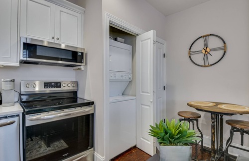 The historic Stovall-Barnes House is a short walk from the Savannah River, the medical district, the Cyber Center, and many of the city's most dynamic entertainment venues, restaurants, and museums. This charming home retained some of the original wood floors, windows, and moldings. The new modern kitchen includes granite countertops and stainless steel appliances. Includes stackable w/d, smart TVs, wifi, plush linens, and gated off-street parking. This unit is on a property with other VRBO listings. If you are in search of a place to house a large group for a wedding, girls weekend, family reunion or business function, please inquire about the availability of attached and nearby units on the property. Each unit, however, is it's own separate apartment that is completely private from the other units. There is the main house that has 4 units that share a common breezeway and then there is a stand alone building behind the main house with just two units. This is the downstairs of the two units in the stand alone building. Please also note, this home is located in the downtown environment and there will often be noise from a neighboring bar, trains and traffic.