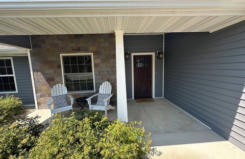 This newly built ranch-style house has four bedrooms, including two primary suites, along with three full bathrooms. This home features a living area with a fireplace, an open concept layout, a separate laundry room, and an attached two-stall garage. Outside, there's a patio in the backyard, and the entire home is wheelchair accessible with no steps. The property is conveniently located near various attractions including the YMCA, BP gas station, Top of the Hill Shops, and Peninsula State Park. During the peak summer season from June to August, we prefer to rent on a Saturday-to-Saturday basis for convenience.