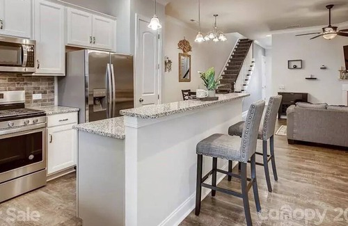 In PINEVILLE, NC, a short trek to downtown Charlotte, this lovely vacation rental awaits the eager traveler! A quick drive will bring you to Carolina Place Shopping Mall, Pineville Ice House (ice skating rink), and various parks where you can soak up the sun. Just 5 minutes away from the exciting Carowinds Amusement Park. Great local restaurants just minutes away. With 4 bds 2.5 bathrooms, a fully equipped kitchen this house is an excellent retreat for the whole family.