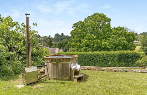 Separate Toilet 2.. Oil central heating, electricity, bed linen, towels and Wi-Fi included. Fuel for open fire and wood burner included. Travel cot and highchair. Welcome pack. Enclosed garden with patio, summerhouse, gas barbecue, pizza oven and garden furniture. Wood fired hot tub for 6 (private). Outdoor heated swimming pool with shower facilities and changing facilities (pool is shared with other properties on-site, 10.5m x 5.5m, open May 1st to September 30th, 2pm to 10pm). Private parking for 4 cars. No smoking. Please note: There are 10 steps in the garden. The property has a natural water supply via a borehole/stream/well. . This rural Georgian manor house in Blagdon is a stunning property set amidst expansive grounds, exuding charm and elegance. It boasts four spacious bedrooms, each offering a comfortable and luxurious retreat for its occupants. The manor house stands as a testament to the Georgian architectural style, with its symmetrical design, grand entrance, and classic features.