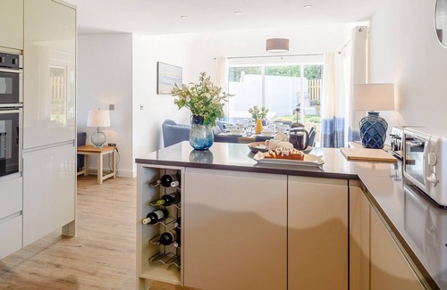 Bathroom: With bath, walk-in shower, toilet, heated towel rail and tiled floor.. Gas central heating, electricity, bed linen, towels and Wi-Fi included (68/33 mbps). Travel cot, highchair and stairgate (please supply own bedding). Welcome pack. Large, enclosed lawned garden with patio, garden furniture and gas BBQ. Hot tub for 5 (private). Bike/surf board store. Private parking for 2 cars; additional on road parking. No smoking. Please note: There is a fenced lake in the grounds, 220 yards away.. Seashells is a spacious, beautifully presented, detached property, completed in 2020, with four bedrooms, a large private garden with sliding doors from open plan living area, a hot tub, outdoor shower and a games room for children, which has table football, a sofa and a TV. There is underfloor heating downstairs and radiators upstairs and in the games room, so the house is really warm and cosy in the winter.