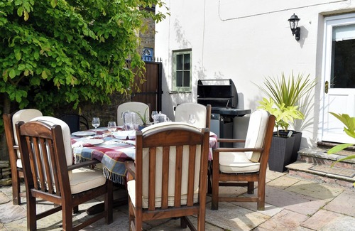 Bathroom: (2 Steps)Bath With Shower Over, Heated Towel Rail, Toilet. Gas central heating, gas, electricity, bed linen, towels and broadband included. Initial logs for wood burners included. Welcome pack.. Enclosed courtyard garden with patio and garden furniture. Hot tub for 6 (private). Private parking for 2 cars. No smoking.. A spacious end-terraced Georgian town house set right in the heart of the historic market town of Richmond. Offering on-site gated parking and an outside courtyard - facilities rarely found within the town. With two spacious downstairs reception rooms, both with wooden floors, wood burner, original shutters and plenty of space for a gathering of friends or family. A downstairs shower room with toilet and utility room, which is ideal for coats and boots, complete the facilities. On the first floor is a second bathroom and shower, and four spacious bedrooms with two kingsize and two twins offering a good selection of sleeping arrangements.