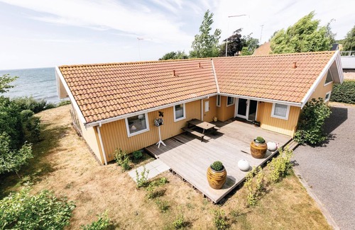 In the 1st row to the Baltic Sea and with beautiful panoramic views is this beautiful and well equipped quality holiday home close to the beach, recreation areas, bike paths and the many stores in Rønne. The house is the last house in a street in a quiet area and with direct access to the beach. This very well furnished vacation home offers plenty of space: there is a large entrance area, a nice open kitchen with plenty of space to cook your vacation meals and a nice sized bathroom with jacuzzi and sauna. Both from the kitchen and the spacious living and dining room you have a beautiful sea view through the large windows.