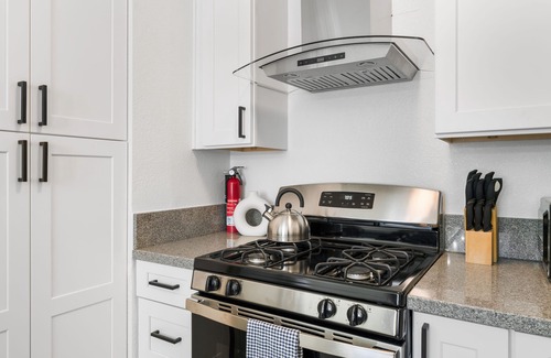 Hungry? Our fully stocked kitchen has everything you need to prepare a delicious meal away from home. From modern appliances to cookware and utensils, you'll find everything you need at your fingertips. The dining area provides ample seating for everyone to enjoy meals together.