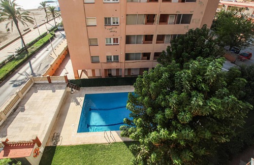 Practical and family-friendly apartment with communal pool and wonderful views of the beach and the sea.