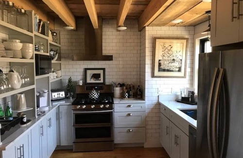 This home has beautiful hardwood floors throughout with new windows and doors w/ a modern kitchen fully stocked with plates, utensils and stainless appliances (refrigerator, double oven/gas range, dishwasher, and microwave).