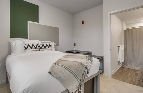 *Bedrooms include 2 twin beds, 2 full beds, and 1 standard King bed (rare option in Chico!). Within each bedroom (except for the twin beds) you find a desk and chair. If you require additional workspaces, we also have an office/business center right next to the units that includes a whiteboard, Expo markers, and grounded outlets. Each bedroom is also equipped with its own private bathroom. Inside the bathroom, you'll find a tub/shower combo. We provide shampoo/conditioner, and body wash.