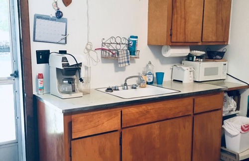 The cabin: Property is on McKay Bay in Lake Huron with local fishing available and freighters to view. The address is 1825 Lakeside Rd. It is located about 20 miles east of the Mackinaw Bridge. It has a large crib dock and deep water for tying up your boat. Shore is rocky, but if you go beyond the rocks, lots of sand. The CABIN sleeps two. The cabin has basic kitchen and baking dishes; A queen sized bed with blankets and pillows. There is a small LP gas stove; small fridge; very small top freezer in fridge. There is normally firewood near the fire ring by the shore for your use; if no wood you may purchase some in town. Entry Key for the cabin located in Lock box. Fan and space heater in cabin for your use. Lots of cedar trees and fall apples.
