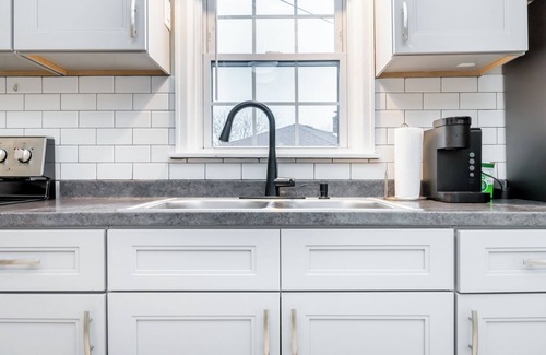 Stay in this newly remodeled 4-bedroom, 2-bath mid-century modern home in Elizabethtown, KY. With stylish, colorful art and fresh decor, this charming retreat offers a blend of comfort and design. Located on a quiet street, it’s just minutes from downtown, providing the perfect balance of tranquility and convenience. Enjoy driveway parking and easy access to local attractions, dining, and shopping. A unique and comfortable space for your next getaway!