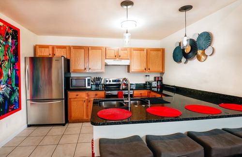 KushKations Beach is a 420-friendly home located near Downtown Denver, just a 25-minute drive from Denver Airport! This spacious 4-bedroom, 2-bath home comfortably sleeps 10 but can accommodate up to 12 guests. With abundant natural light, beautiful hardwood floors, and an open lounge area, it’s perfect for relaxing and entertaining. Enjoy a variety of amenities, including three arcade games, a pinball machine, pool table, PS5, theater room, and hot tub—everything you need for a fun and memorable stay!