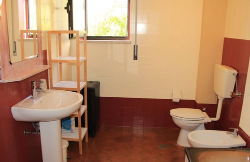Enjoy the beach view from the master bedroom, with balcony and pink marble fireplace. The second blue bedroom has a double bed and a single bed with wall cupboard. Located at the main entrance of the house on the 1st floor, enter the hall which distributes the 2 bedrooms, the kitchen with sitting area (sofa bed), and the bathroom with toilet.