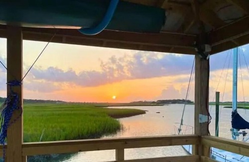 The Yacht is on a private, secluded, dock just off the Folly River. This paradise is yours for your entire stay. You can relax in the hammock or sit at the picnic table on the large pierhead overlooking the marsh. You can take one of the kayaks (we have 3 singles and 1 double) and paddle through the marsh exploring, go swimming, or try your luck fishing from the dock. You can also enjoy a breathtaking sunrise from the bow of the boat or a breathtaking sunset from the stern - or relax in the chairs on the dock, or up on the pierhead where you will always find a cool breeze.