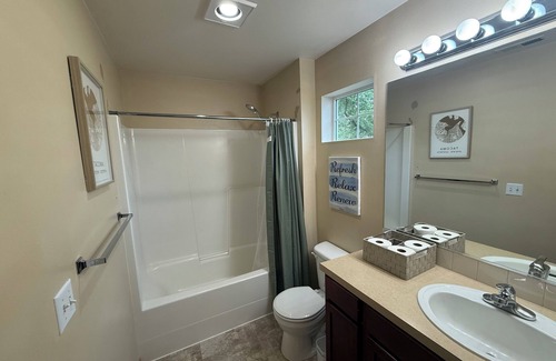 Spacious 4 bedroom home, ideal for corporate groups, families, and event travelers! 11 min to Good Sam Hospital, 9 min to WA State Fairgrounds, 12 min to Tacoma Waterfront, 10 min to Tacoma Dome, 37 min to Pike Pl Mkt, and 54 min to Mt Rainier. Sleeps 12 guests, 4 King beds, 2 Queen sofa sleepers, high-speed WiFi, smart TVs, fully equipped kitchen, and workspace. Perfect for work, leisure, offering comfort and convenience for your stay. 24/7 security monitoring, fenced in backyard, W/D, wlk trls