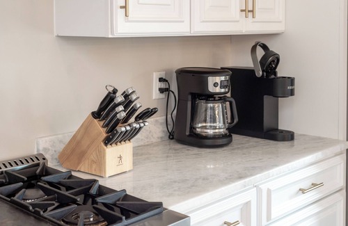 -Fully Equipped Gourmet Kitchen – Gas stove, marble island, wine cooler, Keurig, toaster oven, blender, baby high chair, Pack 'n Play, and more.