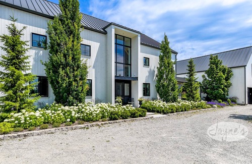 BAY VIEW BARN - Welcome to your very own 22-acre private playground! As you arrive, you'll capture a glimpse of the property's beauty, driving down the private driveway past a field and pond, to be welcomed by a spectacular 120-year-old converted hay barn. With level land, 2 km of walking trails, fields and forest to explore and stunning views of Georgian Bay and the Niagara Escarpment, you'll fall head over heels even before you enter the home!