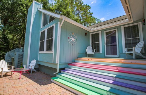Book this playful yet tranquil & serene vacation home today! This clean, airy, comfortably furnished 3 bedroom home in Wild Dunes Resort features a 5-minute walk to Isle of Palm's famously wide & pristine beach; a clean, renovated kitchen with top of the line stainless steel appliances; and terrific natural light. Once you walk up the cheerful, rainbow-colored steps to the front door, all the rooms in this easy living home are located on the same level. The home's layout -- with a spacious living room as well as a sunroom with a wall mounted smart TV -- provides lots of separate seating areas for your group to gather together or split off into smaller groups. You'll be close to the beach but feel like you have your own private oasis, as Love Blooms Here is tucked away in a quiet & relaxing residential neighborhood.