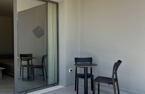 Studio apartment on the first floor with access to a shared garden. Perfect for couples, it includes a queen-size bed, kitchenette, private bathroom, AC, Wi-Fi, and smart TV. Located in a quiet residence with BBQ area, elevator, reception, and 24/7 security. Just 5 minutes’ walk from Lungomare and the beach.