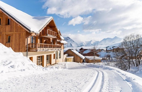 The residence Les Balcons des Aiguilles in la Toussuire, comprises of 27 apartments spread over 3 chalets, they are made of wood and stone and were built in the traditional style of the Savoie region. The main chalet (with lift) offers accommodations as well as a swimming pool, a SPA area and an indoor car park. The two other chalets comprise of 7 apartments each on 3 levels (lift not available). The residence in La Toussuire, Alps, France is situated 80m from the ski lifts (return with skis on) and 500m walking distance from the centre and the shops. Surface area : about 41-49 m². Living room with bed-settee. Bedroom with double bed. Cabin with 2 bunk beds or 2 single beds OR Bedroom with 2 bunk beds. Kitchenette with coffee machine, dishwasher, microwave, vitroceramics cooking rings, fridge. Bathroom. Shower room. WC. Balcony OR Terrace. The beds in elevation are not suitable for children under 6 years.