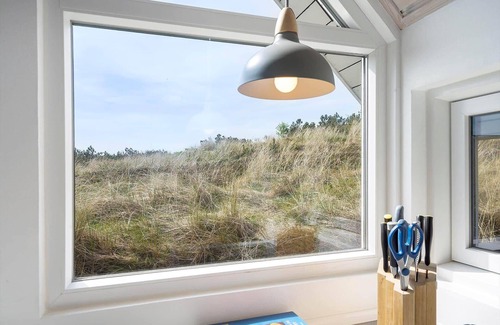 This appealing holiday apartment captivates with its tranquil location on Baunebjergvej in Haurvig. Guests will appreciate the spacious open kitchen, equipped with modern amenities including a dishwasher, electric/gas stove, refrigerator, and coffee maker, perfect for preparing delightful meals. The living area features a cozy atmosphere with sloped ceilings, wooden paneling, and a smart TV offering Danish and German channels. Accommodating up to six guests, the apartment includes three comfortable bedrooms and a stylish bathroom with a shower. Enjoy the convenience of fast Wi-Fi, underfloor heating, and a washing machine. The outdoor terraces provide stunning views of the dunes and blooming heaths, ideal for relaxed breakfasts or evening barbecues. A sauna adds an additional touch of relaxation to the stay. Explore nearby nature trails or the beautiful North Sea beach just 600 meters away for a perfect blend of tranquility and adventure.