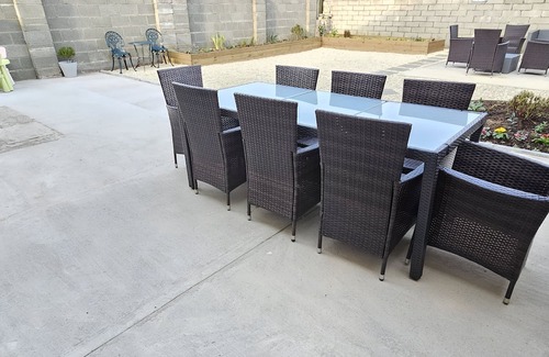 - **Enclosed rear garden** with patio seating