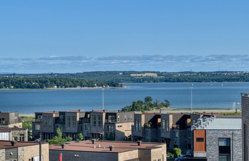 View on the St-Laurence River. Splendid condo on the 3rd level, nobody over you, with a private parking, 2 bedrooms, privated balcony furnished for your apero and more. New furniture and well decorated. Parking included.