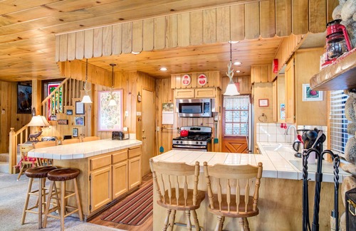 Cedar Lodge is perfect for a cozy couple's retreat, or a romantic weekend getaway. This home has 1 bedroom, 1 bath that sleeps 2 people maximum. There is a fully equipped kitchen with a dishwasher. The living room has a fireplace (firewood provided in season), and a 37" flat screen TV/DVD/HD/DVR with satellite, WiFi, movies, and books. The private deck has several lounge chairs & tables, a covered picnic table & chairs, and a gas BBQ for grilling your favorite meal under the stars. No pets allowed. Does not have air conditioning. "EV Charging Station available within five miles of the cabin"