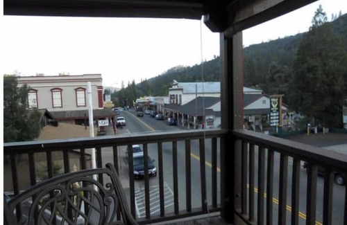 The balcony, that we love and is a rare find in Mariposa, has a view of the cute downtown strip!