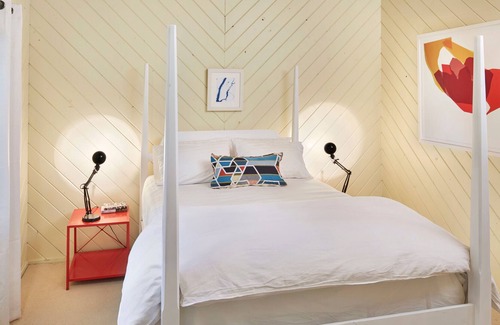 The ideal getaway house in the perfection location: conveniently close to all the great restaurants and shops of Rhinebeck village but just secluded enough be able to relax and lounge in the privacy of a wooded site. The house has vintage character but modern updates, including all new kitchen appliances, TVs. This is the home of an artist and architect, who are passionate about collecting and sharing their love of art and antiques. You will fall in love with the great room and its conversation pit, which is ideal for entertaining or just lounging at home by the fire. The house is in a wooded area but bathed in sunlight. Warm wood walls, high ceilings, and wrap around windows will make you feel completely immersed in the natural surroundings.