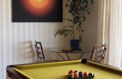 Our 1970 built timber clad house is on the top of the hill, and overlooks both Boston Bay and the Lincoln National Park. With a huge front deck and bar, it’s the ideal space to cook a BBQ or sip a morning coffee as the sun rises directly in front. The back patio and deck is soaked in the afternoon sun, with veggie garden and native trees giving complete privacy for outdoor entertaining. Unwind and watch TV in the back sunroom, or play a game of pool next to the fire with the full front views on our vintage restored slate table. Dinner parties are sorted with our large kitchen full of everything you need, plus Moccamaster coffee pot and herb garden just a step away. The master bedroom opens up onto the front deck, with sunrises visible from bed. The second bedroom is large enough for a double bed in one corner, and two single beds on the other side. The third smallest room features a double bed and retro gaming setup to keep all ages entertained! The original 70s bathroom features a low blue bath and shower, and the toilet is located next to the laundry with a washing machine and extra linen and towels. The entire house is filled with many house plants, bringing life and colour throughout. This space is much loved, in all the right ways. We know you will feel relaxed and comfortable in our little haven.