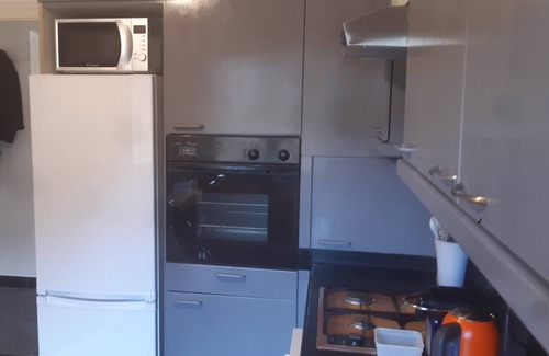 The kitchen is equipped with an oven, a stovetop, and a refrigerator, as well as a coffee maker, an electric kettle, and a microwave. Bathroom amenities include a hair dryer, towels, and toilet paper. And there's a washing machine, so you can even pack a bit lighter. Other amenities include a living room, bed sheets, an ironing board, and heating.