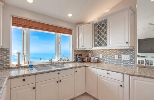 Relax & enjoy beautiful sunsets & endless ocean views in this private villa, situated on an amazing 1/3 acre of ocean front land with 75'of ocean frontage in the laid back beach town of Encinitas. This professionally designed offering features fun hidden treasures & high end luxury finishes throughout. Highlights include 5br + 4.5ba, 2 levels, an unprecedented ~10,000sf of outdoor space, 4+ parking, EV charger, fire pit, A/C, dogs ok, sleeps 12, & a short 2 blocks to Grandview beach.