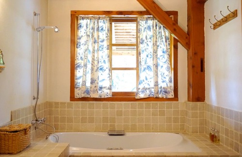 We offer the main Ranch House as the rental here. The 2 bedroom, 2 bathroom house features post and beam construction, vaulted ceilings, and a oversizes jacuzzi tub. The views from the large open air kitchen and living room are truly amazing.