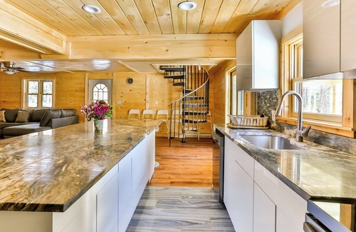 This spacious property features 9 private bedrooms, 5 baths, 2 saunas, and an outdoor hot tub, all nestled in the heart of Hunter Mountain, just 10 minutes from Windham Mountain and Tannersville. Enjoy two large decks with lounge areas, a propane BBQ, and the hot tub. The modern kitchen is equipped with new appliances and includes a large eat-in area that seats 14 comfortably. Conveniently located near local restaurants and attractions, making it an ideal spot for your mountain getaway.