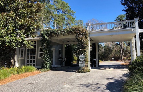 This unique, fully furnished, and equipped home, sits on a quiet cul-de-sac in a gated community. A gorgeous 200-acre Lake is the highlight of the 1500-acre property of Steelwood. Enjoy the spacious screened-in porch overlooking 2 holes of the Country Club Golf Course. The 1500 sq foot home with a reverse floorplan; on the upper level is vaulted ceiling open living space and on the ground floor, 2 Queen bedrooms/Full Baths. A perfect place to enjoy tranquility and security, escape from winter weather, or work remotely. Community Pool and Rec Area is a short walk away, just a one-hour drive to Gulf Coast Beaches, 20 min drive to Mobile Bay, Fairhope Shopping and Restaurants and so many things to do and explore.