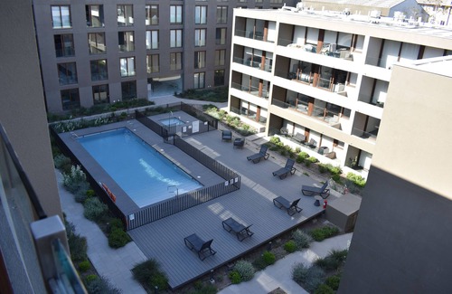 No, this Downtown Santiago apartment does not have a swimming pool. Check the Facility Overview section for details about the pool and other available facilities.