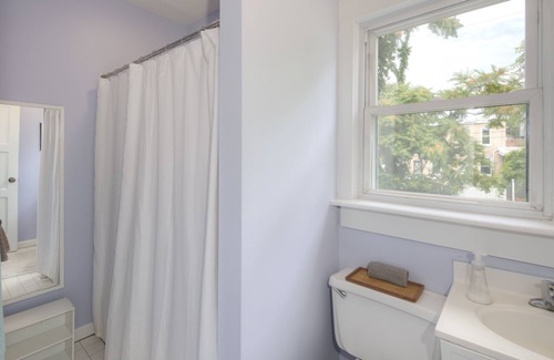 Cozy light-filled front bedroom in a two bed one bath Victorian frame house on a tree lined street in Charles Village/Waverly. It’s got a newly renovated first floor with a bright open plan kitchen to make your home, away from home, for you and your family. We look forward to hosting you!