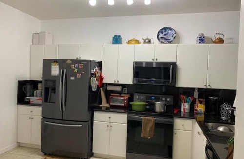If you are looking for a comfortable and convenient place to stay in Miami, you will love our home in Kendall. Kendall is a peaceful neighborhood. Our home is a large two-story townhome with three bedrooms, three bathrooms, and a patio. You can also enjoy phone, internet, and cable TV services and parking is available for 2 cars. Our home is close to Walmart, Home Depot, shopping centers, restaurants, schools, and Kendall Drive (88th Street), which makes it easy to get around.